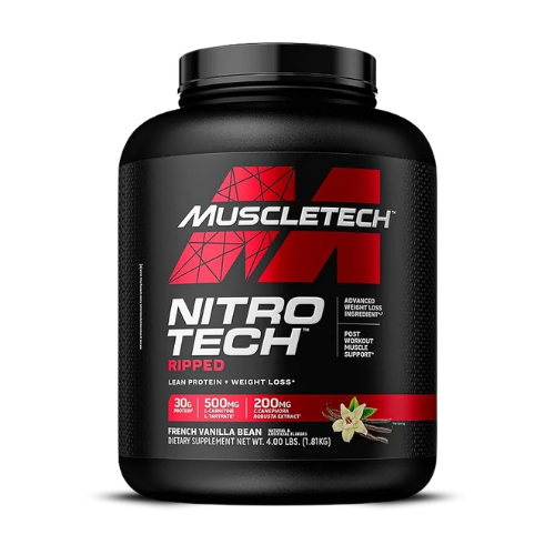 Nitro-Tech Ripped contient également de la L-carnitine L-tartrate et des TCM pour soutenir la perte de poids et favoriser une silhouette maigre et sculptée. Il intègre également des extraits de thé vert et de cynorrhodon pour un soutien antioxydant. Avec un ratio élevé de protéines par calorie et des ingrédients uniques, MuscleTech Nitro-Tech Ripped est idéal pour atteindre vos objectifs de composition corporelle.